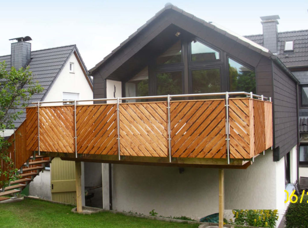 _ Edelstahlgeländer mit Holzfüllungen